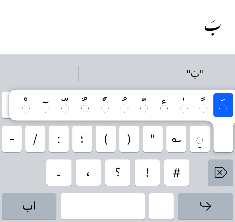 عربی رسم الخط میں، حروف لفظ میں اپنی جگہ کے ساتھ اپنی شکل تبدیل ک لیتے ہیں۔ ٹائپ کرنے سے پہلے لفظ میں اگلے حرف کی آنے والی صورت دیکھیے۔ اس سے صحیح حرف چننا، اور غلطی کرنے سے پہلے پکڑنا آسان ہو جاتا ہے۔